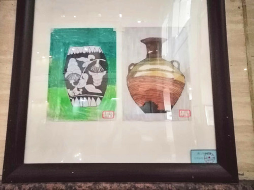 在文物繪畫(huà)作品展出區(qū)域,孩子們親手繪制出的近百幅文物繪畫(huà)作品,用畫(huà)筆與歷史對(duì)話(huà),感悟著中華民族先人們的智慧結(jié)晶。