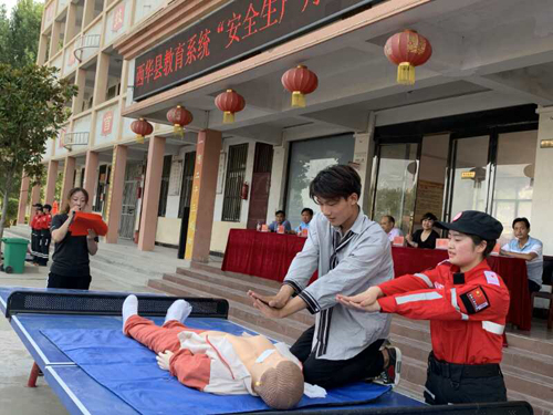 活動(dòng)現(xiàn)場(chǎng),消防教官為同學(xué)們講解了防火安全的重要性,火災(zāi)的預(yù)防和救助,演示了滅火器的使用方法;西華縣紅十字會(huì)救護(hù)師耿佳佳、姚華杰二人為同學(xué)們現(xiàn)場(chǎng)生動(dòng)講解演示“珍愛(ài)生命、預(yù)防溺水”的生動(dòng)安全教育課,讓同學(xué)了解溺水的危害性,做好有效預(yù)防溺水的重要性,演示發(fā)生溺水怎么辦及對(duì)溺水者如何做胸外心臟按壓,同學(xué)們認(rèn)真聆聽(tīng)和學(xué)習(xí),學(xué)會(huì)了判斷呼吸心跳停止、按壓手法、按壓位置、打開(kāi)氣道方法、判斷呼吸心跳是否恢復(fù)等急救技能。同學(xué)還掌握了溺水急救基本標(biāo)準(zhǔn):打開(kāi)氣道、人工呼吸、胸外按壓。