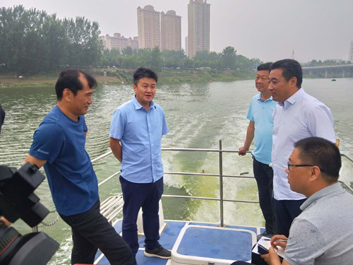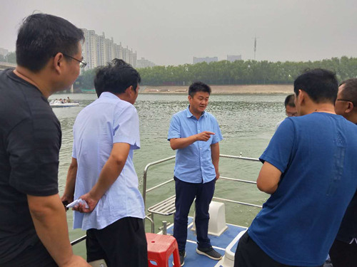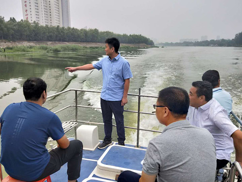 李湛一行乘船東行,通過實(shí)地查看、聽取介紹、詢問情況等方式,詳細(xì)了解河道周邊和河流沿線環(huán)境狀況。