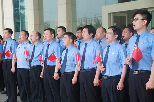 “沒有共產黨就沒有新中國,沒有共產黨就沒有新中國,共產黨,辛勞為民族,共產黨他一心救中國……”音樂響起那一刻,西華縣檢察院全體干警莊嚴站立,他們內心澎湃,他們?yōu)樽约菏侵腥A兒女的一員而自豪。