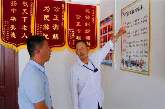 阡陌芬芳,綠意盎然。7月22日上午,記者在楊廟鄉(xiāng)“幸福調(diào)解室”見到了正要外出為村民調(diào)解矛盾糾紛的王錦良,老人雖然年過七旬,但思維清晰,說話聲音洪亮,一講起糾紛調(diào)解,話匣子便一下子打開了。