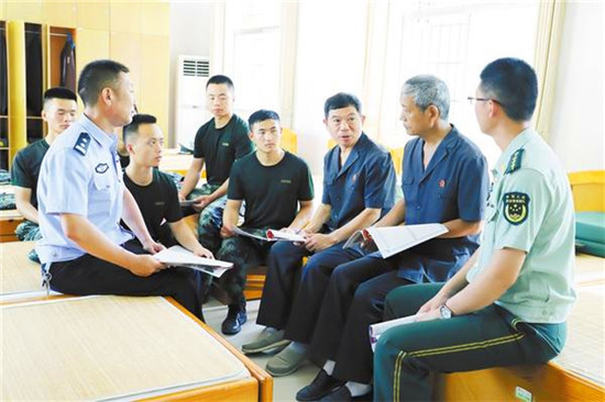 7月26日上午,太康縣人民法院的法官們來到縣武警中隊(duì),為武警官兵提供法律咨詢和服務(wù)活動(dòng),解決他們?cè)谌粘9ぷ鳌⑸钪杏龅降姆蓡栴},并向他們贈(zèng)送《軍人維權(quán)指南》《法律小常識(shí)》等有關(guān)法律書籍及慰問品,受到了熱烈歡迎。圖為該院法官向武警官兵講解法律常識(shí)。