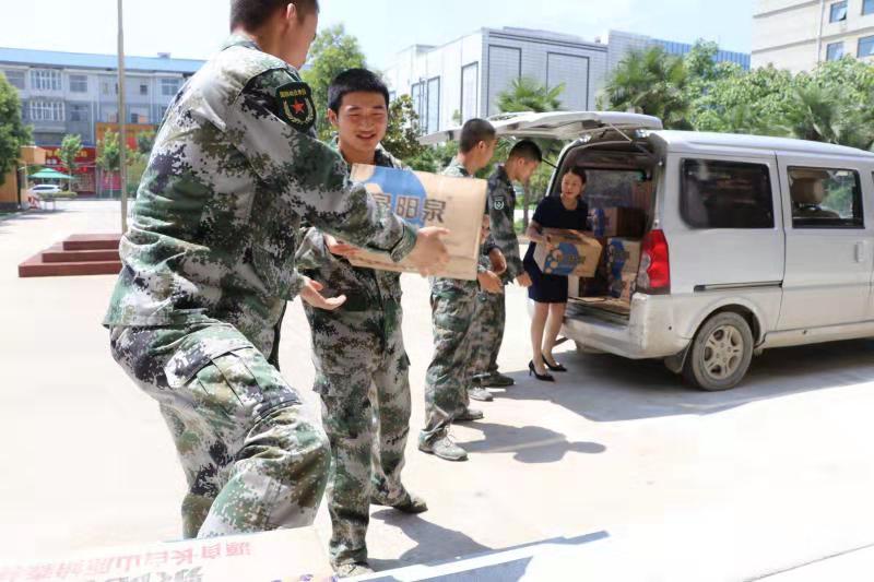 7月29日,太康縣清華園書(shū)店負(fù)責(zé)人李丹駕駛面包車(chē),先后來(lái)到縣人民武裝部和消防大隊(duì),為部隊(duì)官兵和消防指戰(zhàn)員送來(lái)礦泉水等。讓他們?cè)诟邷靥鞖饫锔惺艿角迦A園書(shū)店送來(lái)的絲絲清涼?!八麄兤匠S?xùn)練、滅火很辛苦,作為一個(gè)愛(ài)心企業(yè),關(guān)心部隊(duì)官兵是我應(yīng)盡的義務(wù)?!崩畹ばχf(shuō)。