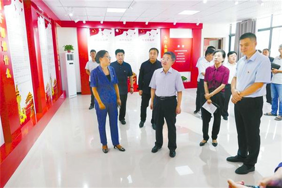 皇甫立新首先來到槐店回族鎮(zhèn)海樓社區(qū)。海樓社區(qū)位于縣城中心,是全縣政治經(jīng)濟文化中心。走進社區(qū),路兩旁紅旗飄飄,新時代、新思想、新目標(biāo)、新征程等具有時代特色的宣傳畫繪制在兩邊的墻壁上。社區(qū)廣場上“百村綜合治理辦公室”的牌子特別醒目,社區(qū)辦公室有關(guān)百村綜合治理的規(guī)章制度一應(yīng)俱全?;矢α⑿聦巧鐓^(qū)的工作給予充分肯定,并就工作中存在的問題給予指正,要求社區(qū)黨支部突出建好、管好、用好村委黨員會議室,突出主題,唱響主旋律。