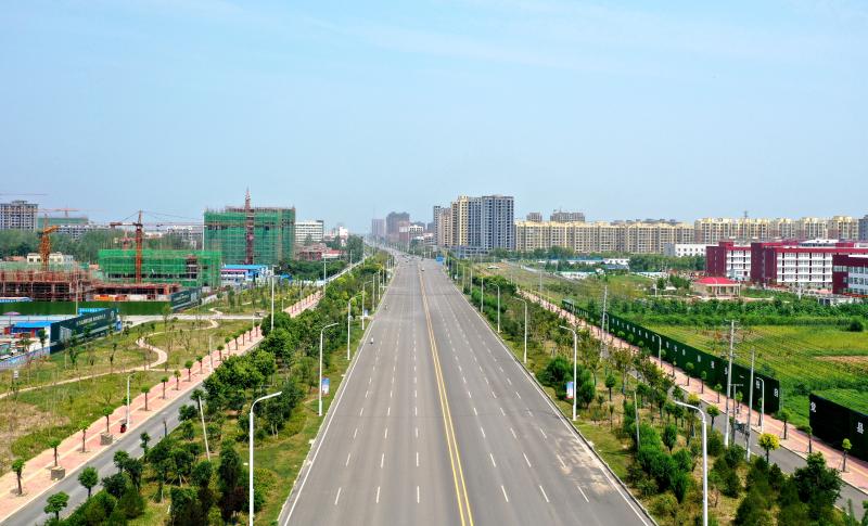 城市橫向主干道新華路,華燈矗立、車流如織,郁郁蔥蔥、生態(tài)廊道,游園點綴、多姿多彩,商賈云集、坐擁繁華。