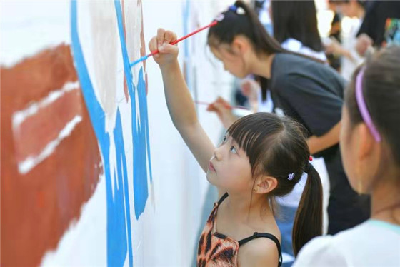 活動現(xiàn)場,參與者們從設(shè)計構(gòu)圖到勾勒輪廓,從調(diào)制顏料到搭配色彩,每一個步驟、每一道工序都一絲不茍。大家圍繞“禮贊新中國 歌頌新時代”這一主題,在近百米長的墻面上認真作畫,只見現(xiàn)場參與者工筆勾線、揮毫上色,經(jīng)過一個多小時的創(chuàng)作,“社會主義核心價值觀”“中國夢”“市民文明公約”等愛國元素躍然墻上……內(nèi)容豐富、形式多樣,一幅幅作品色彩明快、質(zhì)樸純?nèi)唬浞终故玖藭嬛驹刚邆儗ψ鎳图亦l(xiāng)的熱愛,對藝術(shù)的追求和對美好生活的向往,宣傳了中國傳統(tǒng)書畫藝術(shù),提升了新時代文化自信,為該縣美術(shù)愛好者帶來了一場藝術(shù)盛宴。