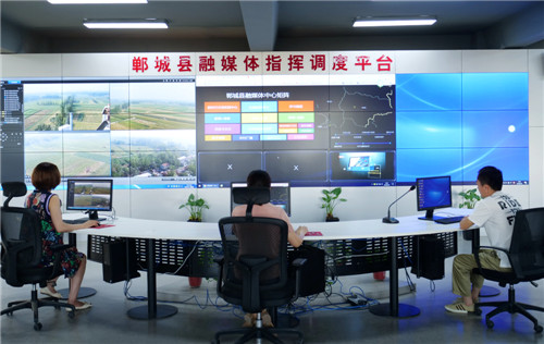 “要扎實(shí)抓好縣級(jí)融媒體中心建設(shè),更好地引導(dǎo)群眾、服務(wù)群眾?!弊鳛槭〖?jí)媒體融合示范縣,鄲城縣委、縣政府高度重視媒體融合發(fā)展,縣委書記羅文閣、縣長李全林多次深入融媒體中心建設(shè)現(xiàn)場(chǎng)調(diào)研指導(dǎo)工作,并提出殷切期望。要求縣委宣傳部、融媒體中心組織專人負(fù)責(zé)、專業(yè)專攻、專題研究,走出去學(xué)習(xí)先進(jìn)、坐下來結(jié)合實(shí)際、多動(dòng)腦探索創(chuàng)新,“鄲城縣融媒體中心”于2018年10月建成,躋身全市融媒體建設(shè)第一方陣。2018年11月,河南省縣級(jí)新時(shí)代文明實(shí)踐中心、志愿服務(wù)中心、融媒體中心建設(shè)現(xiàn)場(chǎng)會(huì)在鄲城縣召開。
