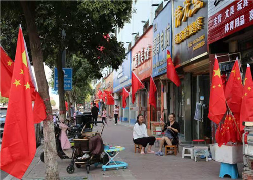 9月28日上午,記者來到紫氣大道、游客中心、上清湖、閆溝河、明道宮景區(qū)等地,看到臨街店鋪、文化中心廣場以及紫氣大道等主干道兩側路燈桿上懸掛的國旗隨風飄揚,街頭游園內擺滿了造型不一的鮮花盆景,大街小巷披上節(jié)日盛裝,老子故里人用行動祝福祖國,愿祖國明天更美好。