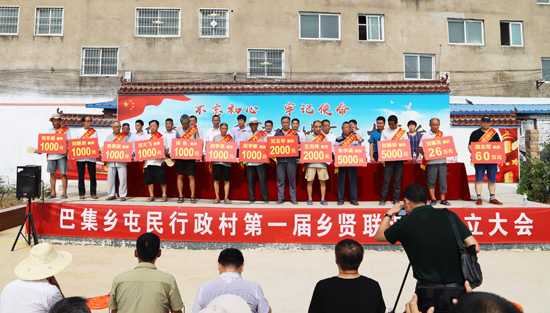 “段志軍每年都捐資捐物回報家鄉(xiāng),他去年捐30萬為巴集大街和屯民村安裝的200多盞路燈已經亮了,捐85萬元新建的村室馬上竣工,將是全縣標準最高的,現(xiàn)在又捐60萬元;劉振發(fā)這幾年捐了40萬多,給村里修路、栽樹、幫扶貧困戶,今天又捐26萬;鄉(xiāng)賢會成立之前,大家已累計捐款240多萬元……”在今年8月6日屯民行政村鄉(xiāng)賢會成立儀式上,朱明理宣布捐款名單時多次被雷鳴般的掌聲打斷;“最難忘的就是村口的那棵大楊樹,最好吃的就是中午剩的涼面條、晚上嗑著大蒜吃。”在三門峽創(chuàng)業(yè)的劉振發(fā)的發(fā)言勾起了眾多游子的親情回憶;“啃個干饃,灶火里燒個辣椒一砸,撒點兒鹽就是最好吃的?!痹谏糖鹑温毜男炱渖浇舆^話茬說;“事業(yè)越大,工作越忙。但是,他們從四面八方歸來,這就是對家鄉(xiāng)的情誼,我們村肯定會越來越好?!编l(xiāng)賢徐其民感慨地說;“從屯民走出的大學生不少,如今長成了企業(yè)家、行政干部等等,如參天大樹,卻不忘根、不忘本,這就是屯民的驕傲?!睆氖陆逃袠I(yè)35年的鄲城二高校長趙耀身為屯村一員感觸良多……