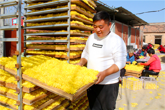 “菊花茶市場十分緊俏,銷路不成問題。”樊慧鵬說,鑫豐合作社烘干的菊花主要銷往河南、江蘇、四川、山東、安徽等省市,產(chǎn)品供不應(yīng)求。2018年,他注冊了“媧之皇”商標(biāo)。