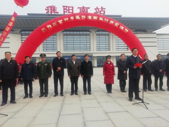 當(dāng)日上午,暖陽高照,淮陽南站站前廣場(chǎng)人頭攢動(dòng)?!案哞F來了,激動(dòng)人心”。為祝賀高鐵開通這一大喜事,淮陽縣舉行了簡(jiǎn)樸的鄭阜高鐵淮陽南站正式運(yùn)行儀式,縣四個(gè)班子領(lǐng)導(dǎo)和有關(guān)部門負(fù)責(zé)同志及附近廣大群眾參加了儀式。