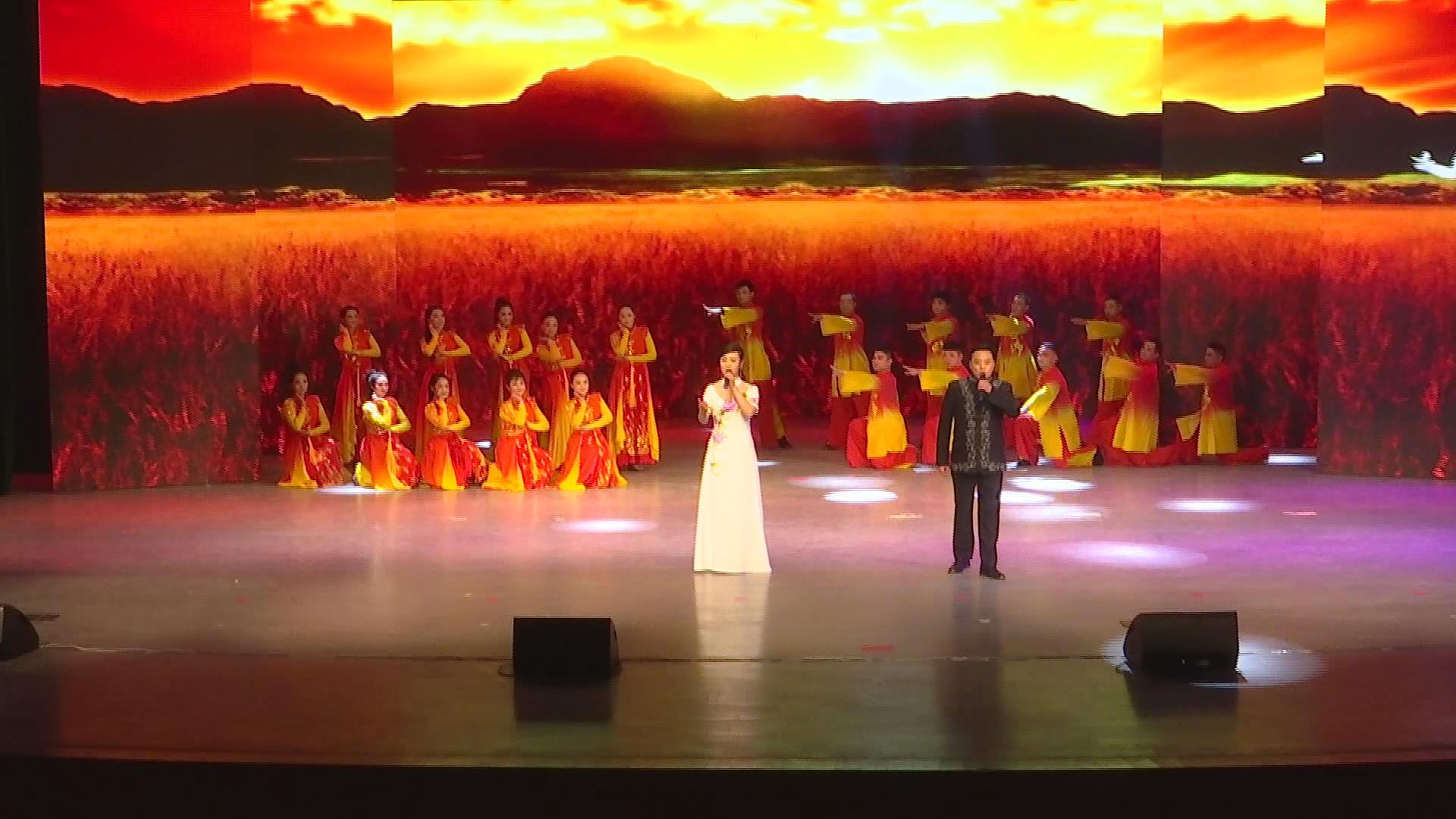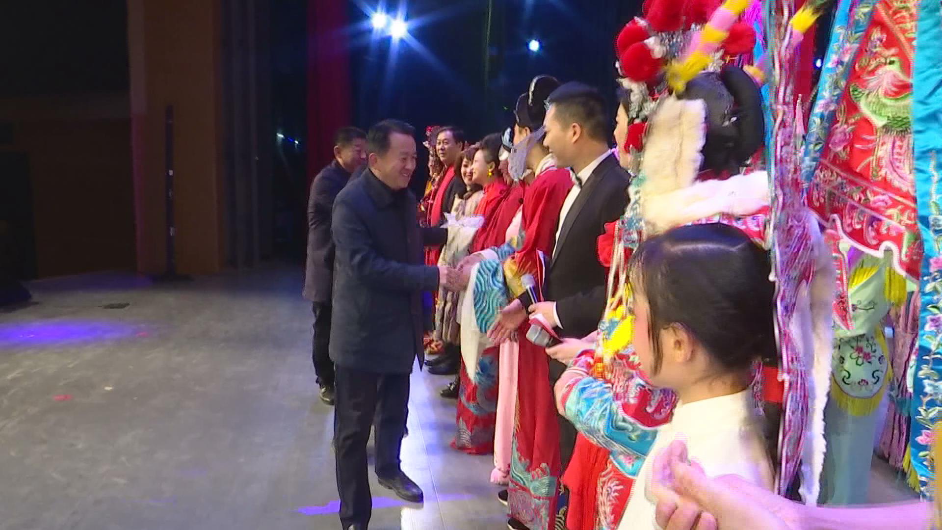 晚會(huì)結(jié)束后,與會(huì)領(lǐng)導(dǎo)上臺(tái)與全體演員一一握手并合影留念。