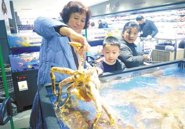 1月20日,一位市民在超市內選購海產品。 記者 孫安平 攝