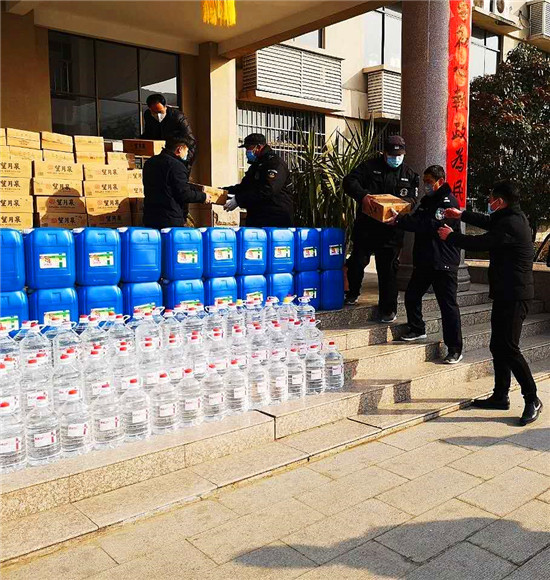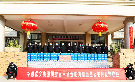 2月9日,一輛掛著“華德保安集團捐贈醫(yī)用物資助力鹿邑縣公安局疫情防控”載著滿滿醫(yī)用物資的貨車,從門口趕來停在鹿邑縣公安局大院里。