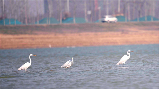 3月5日是驚蟄,俗語有“春雷驚百蟲”,從這一天開始,陽氣上升、氣溫回暖、春雷乍動(dòng)、雨水增多,萬物生機(jī)盎然。驚蟄,自古以來是我國春耕開始的節(jié)令,冬眠的動(dòng)物蘇醒,動(dòng)物們也開始活躍起來。圖為3月4日我市引黃調(diào)蓄工程的兩千多畝湖泊里,水鳥翔集,喜歡水清的白鷺也出現(xiàn)在這里。記者 梁照曾 攝