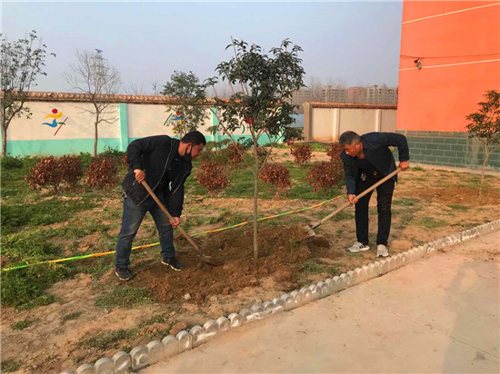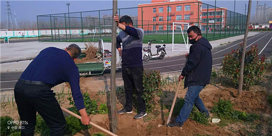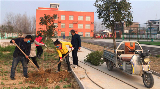 戰(zhàn)疫不忘植樹(shù) 蔣莊小學(xué)添新綠