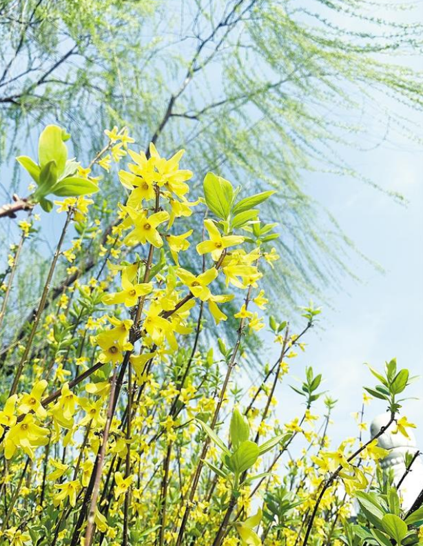 作為春天的信使,一叢叢嬌黃的連翹花,為大地帶來(lái)了濃濃春意。花朵在春風(fēng)的吹拂下?lián)u曳,團(tuán)團(tuán)簇簇,涌動(dòng)如金色波浪。走近之時(shí),聞花香淡雅、賞滿枝金黃,人們也以“報(bào)春花”來(lái)稱呼它。