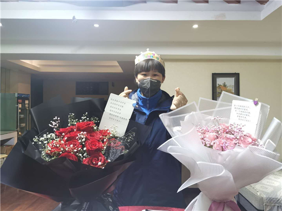 隊(duì)伍集合完畢,接下來的一幕令許聽聽始料未及。來自當(dāng)?shù)厣鐓^(qū)的工作人員,手捧蛋糕、鮮花,唱著生日歌,來到許聽聽面前,向她致以生日祝福。特殊時(shí)期,身處抗疫一線,忙于照顧病人,許聽聽此前對自己的23歲生日沒有任何憧憬,她告訴記者,其實(shí)她當(dāng)天沒想起來是她的生日,面對突如其來的生日祝福,許聽聽說:“當(dāng)時(shí)的心情既激動(dòng)又感動(dòng)。”。