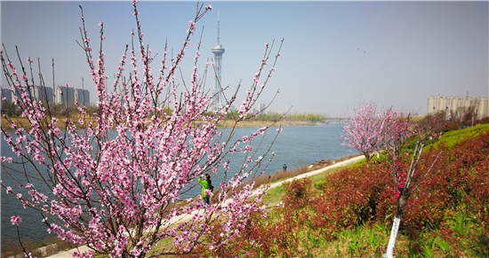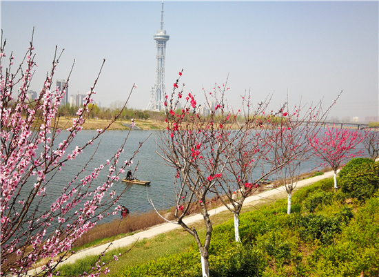 3月22日,周口市沙潁河碧波蕩漾,兩岸處處綠樹(shù)環(huán)繞,花兒姹紫嫣紅,兩岸綠影婆娑,一幅五彩繽紛春景的悅目畫(huà)面。