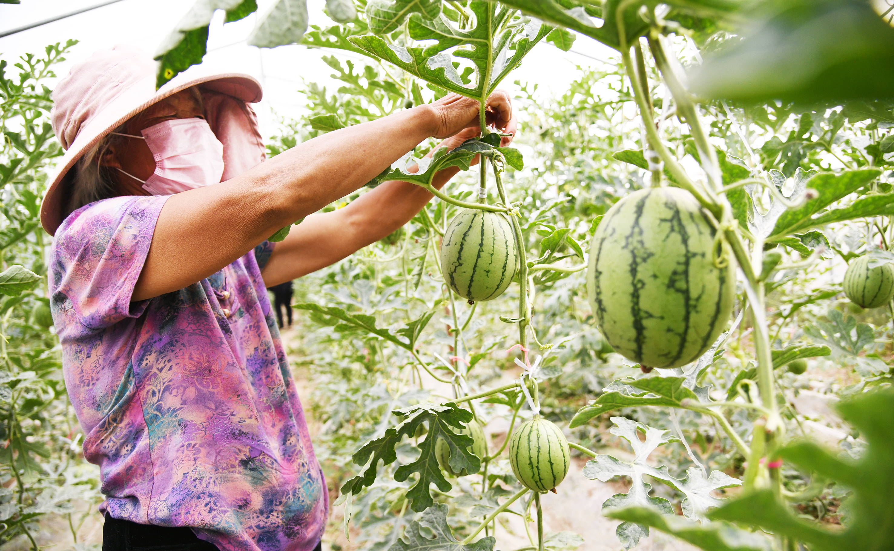 瓜農(nóng)在管理西瓜