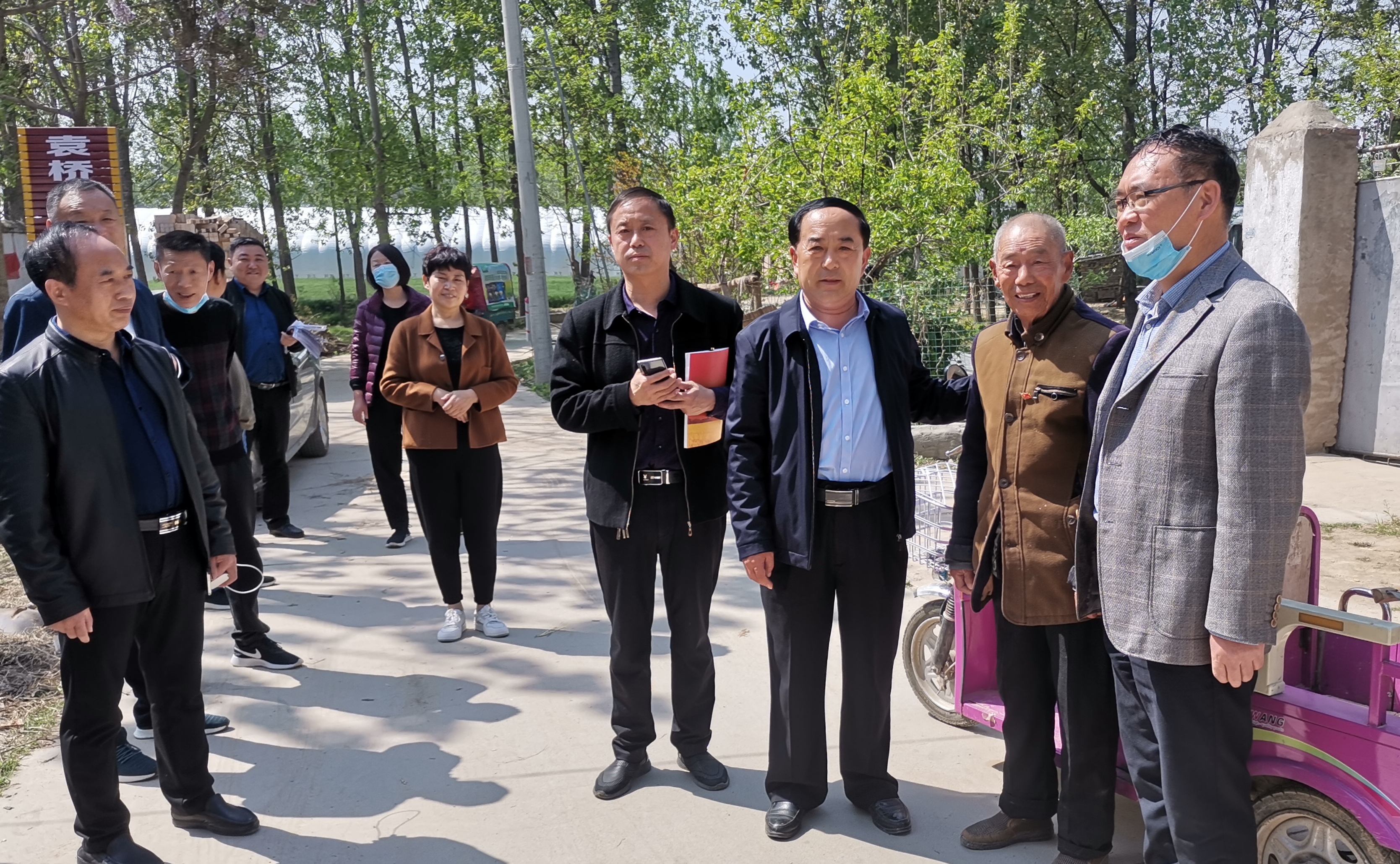 黨組書記張俊峰、局長(zhǎng)葛澤洲在袁橋村指導(dǎo)扶貧工作,并和老黨員合影