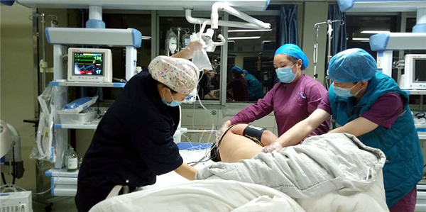 急救迅速展開(kāi)。6時(shí)13分,急救車(chē)到達(dá)醫(yī)院急救中心。救援現(xiàn)場(chǎng),有著豐富急救經(jīng)驗(yàn)的董建洲醫(yī)生判斷患者為重度有機(jī)磷農(nóng)藥中毒且伴有呼吸衰竭癥狀。經(jīng)過(guò)一個(gè)多小時(shí)搶救,患者血壓出現(xiàn)平穩(wěn),但呼吸仍然困難,隨時(shí)有生命危險(xiǎn)。