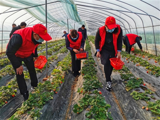 黨員志愿者到幫扶村向過(guò)往群眾宣傳普及新型冠狀肺炎防治知識(shí),發(fā)放新型冠狀病毒感染防控指南,并幫助村民采摘、銷售因疫情而滯銷的草莓,深受當(dāng)?shù)厝罕姺Q贊。