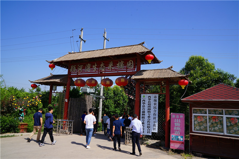 出安羅高速西華西站,沿S329線西行百余步,忽逢桃花林,南行數(shù)千步,中無雜樹,芳草鮮美,落英繽紛,林深處現(xiàn)一村莊?!巴恋仄綍?,屋舍儼然。阡陌交通,雞犬相聞。黃發(fā)垂髫,并怡然自樂……”穿越千年,陶淵明筆下的“桃花源”在西華縣黃橋鄉(xiāng)裴莊村得以“重現(xiàn)”。