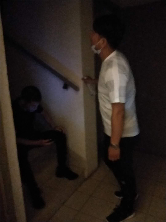 按照事先摸排到的信息,抓捕組民警終于在南京市江寧區(qū)一小區(qū)內找到了嫌疑人的居住地,而嫌疑人卻不在屋內。于是,民警們便在嫌疑人家門“守株待兔”,群里發(fā)來幾張民警坐在樓梯口蹲守照片。等待是漫長的,一直等到晚上10時許,嫌疑人始終沒有出現(xiàn)。民警通過嫌疑人門把手上幾天前的一張廣告單頁判斷,嫌疑人很有可能已經(jīng)不在此居住,便撤離了蹲守點。