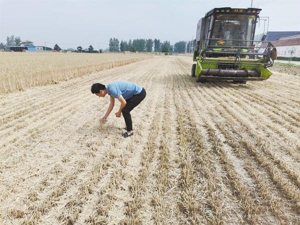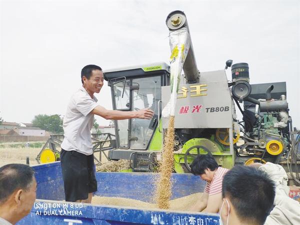 日前,我市小麥相繼進(jìn)入成熟期,田地里一片金黃,滾滾麥浪中收割機(jī)來(lái)回穿梭,農(nóng)民已經(jīng)開(kāi)始收麥了。圖為5月24日上午,沈丘縣李老莊鄉(xiāng)部分麥子開(kāi)始收割,飽滿(mǎn)的麥粒從收割機(jī)中流出,農(nóng)民的臉上綻放出笑容。