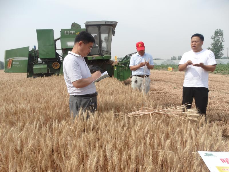 上午9點,專家組首先來到石槽集鎮(zhèn)虎頭村一塊小麥產(chǎn)示范田基地?!澳魄?,俺這麥長得多好,遍地金黃,麥穗稠滿,穗頭勻稱,籽粒飽滿。”村民王天齊興奮地告訴筆者。“這塊地實際面積為2.3畝,種植的是百農307新品種,估摸著超1300斤沒問題!”王天齊信心滿滿。隨后,縣農業(yè)專家組吳和平等一行參照農業(yè)農村部小麥高產(chǎn)創(chuàng)建產(chǎn)量測產(chǎn)驗收辦法,經(jīng)過嚴格的面積丈量核實、機械收獲脫粒、稱量、扣除水分和雜質后,實際畝產(chǎn)達1442.6斤,從而刷新了全縣2020年小麥小面積高產(chǎn)攻關最高紀錄。