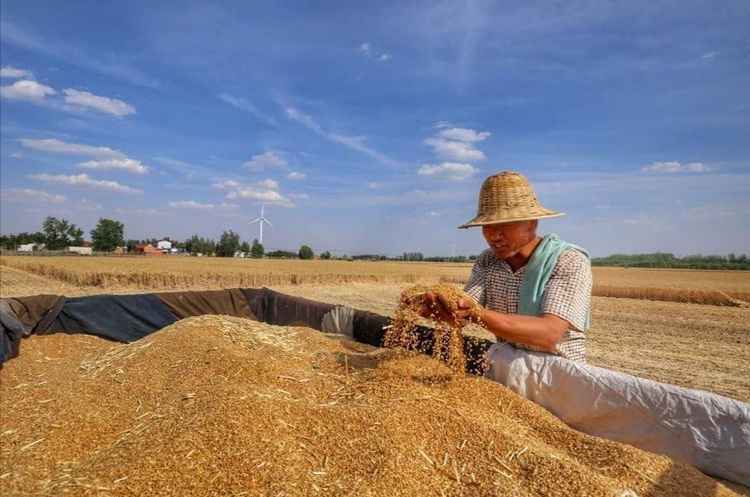 驕陽似火,麥香四溢。6月的西華鄉(xiāng)村大地到處一片繁忙景象。一臺(tái)臺(tái)收割機(jī)在金黃色的麥浪中轟鳴著馳騁,隨著小麥?zhǔn)崭顧C(jī)駛過,一顆顆金燦燦的麥穗被“吃”進(jìn)收割機(jī),然后,一粒粒飽滿的麥子從出倉口“吐”進(jìn)農(nóng)用車車斗里,農(nóng)民的臉上洋溢著豐收的喜悅。