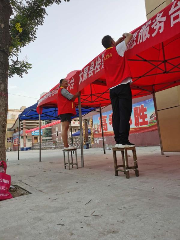 讓考生高考更安心——周口太康百名志愿者揮汗如雨搭建茶水棚