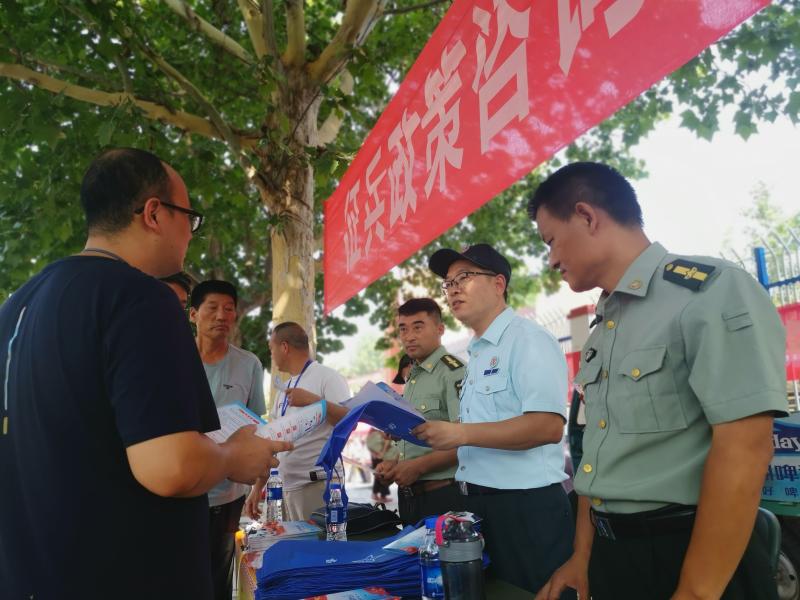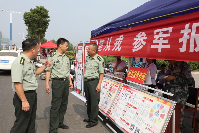 高考期間,淮陽(yáng)區(qū)人武部在轄區(qū)6個(gè)考場(chǎng)所在學(xué)校門口設(shè)立征兵宣傳站,向考生和家長(zhǎng)進(jìn)行見縫插針式的征兵宣傳。宣傳現(xiàn)場(chǎng),“參軍報(bào)國(guó)盡義務(wù),熱血青年競(jìng)風(fēng)采”“當(dāng)兵最光榮、軍人最美麗”等宣傳標(biāo)語(yǔ)格外引人注目,內(nèi)容豐富的征兵宣傳展板一字排開,《參軍入伍明白卡》《大學(xué)新生應(yīng)征入伍宣傳單》等征兵宣傳資料擺放在咨詢臺(tái)上一目了然,吸引了眾多的考生和家長(zhǎng)駐足觀看,圍著咨詢臺(tái)詢問有關(guān)征兵事宜。