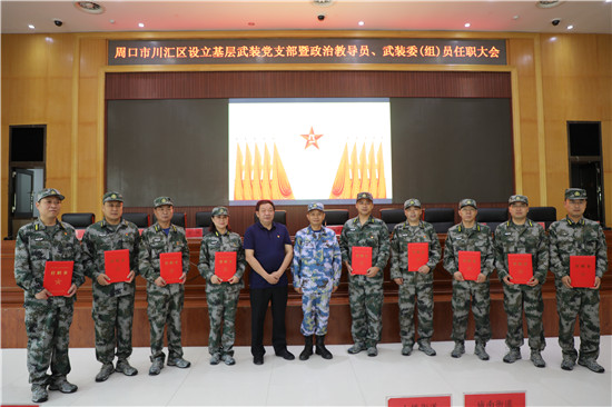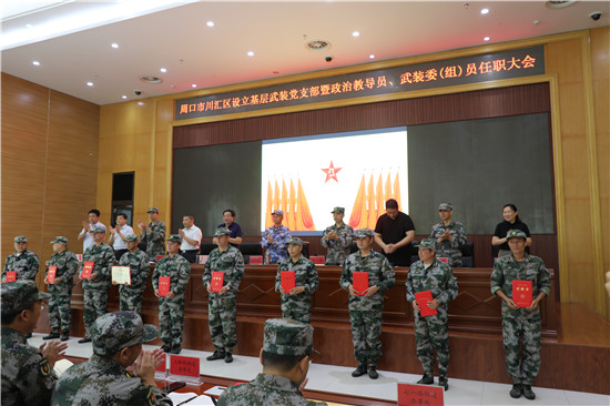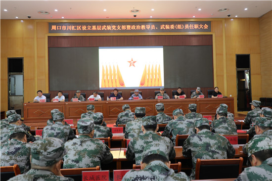 黨管武裝建設(shè)國(guó)防,軍民攜手共筑長(zhǎng)城。為健全武裝工作組織領(lǐng)導(dǎo)體系為推動(dòng)國(guó)防動(dòng)員和后備力量建設(shè)在基層末端落實(shí),7月16日上午,周口市川匯區(qū)召開(kāi)基層武裝黨支部暨政治教導(dǎo)員、武裝委(組)員任職大會(huì)。周口軍分區(qū)司令員湯維政,區(qū)委書(shū)記、區(qū)人武部黨委第一書(shū)記李宗喜,市委組織部處級(jí)干部宋陽(yáng),區(qū)人武部政委高新傳、部長(zhǎng)陳繼芳及城鄉(xiāng)一體化示示范區(qū)、經(jīng)濟(jì)開(kāi)發(fā)區(qū)、港口物流產(chǎn)業(yè)聚集區(qū)等有關(guān)負(fù)責(zé)同志參加了大會(huì)。會(huì)上設(shè)立了18個(gè)基層武裝黨支部,任命了15名基層武裝部政治教導(dǎo)員、20名村(社區(qū))武裝委(組)員任職命令,武裝部政治教導(dǎo)員、武裝預(yù)建黨支部書(shū)記和兼職武裝委(組)員代表先后作了履職承諾發(fā)言,湯維政等為新任命的人員頒發(fā)了任職證書(shū)。