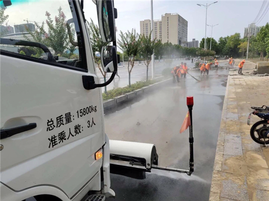 強降雨過后,道路泥沙沉積嚴(yán)重。開發(fā)區(qū)公用事業(yè)管理中心迅速行動,組織環(huán)衛(wèi)工人,出動高壓清洗車、灑水車、洗掃車等作業(yè)車輛,對道路進(jìn)行機械化聯(lián)合清洗、清掃工作。