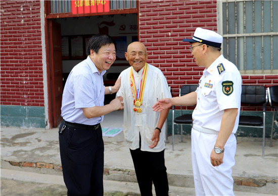 在90歲五級因戰(zhàn)殘疾軍人劉德山家,大伙認真聽劉德山講述部隊的故事;汲冢鎮(zhèn)黃竹園行政村劉老家村88歲劉應平參加過抗美援朝,如今年邁的老劉嚴重耳聾、語言交流障礙,還得靠親屬“翻譯”才能搭上一兩句話,當聽到問他生活好不好時,老劉興奮地豎起拇指說:“好好好”;今年94歲的抗戰(zhàn)老兵丁相廷身體十分硬朗、精神矍鑠,不拄拐、眼不花、耳微聾,得知縣領導要來慰問,老丁早早地把自己的軍功章準備好了,一個個掛在胸前,見面一個軍禮彰顯剛強作風。從1945年入伍至1950年復員,老丁記得清楚、講得明白,大伙聽得有味、不停點贊;巴集鄉(xiāng)段寨村92歲抗美援朝老戰(zhàn)士段相士有個堅持幾十年的好習慣,他每天早上都在村里走一圈,感受美麗鄉(xiāng)村變化,再用溫水抹抹澡,保持健康體魄。