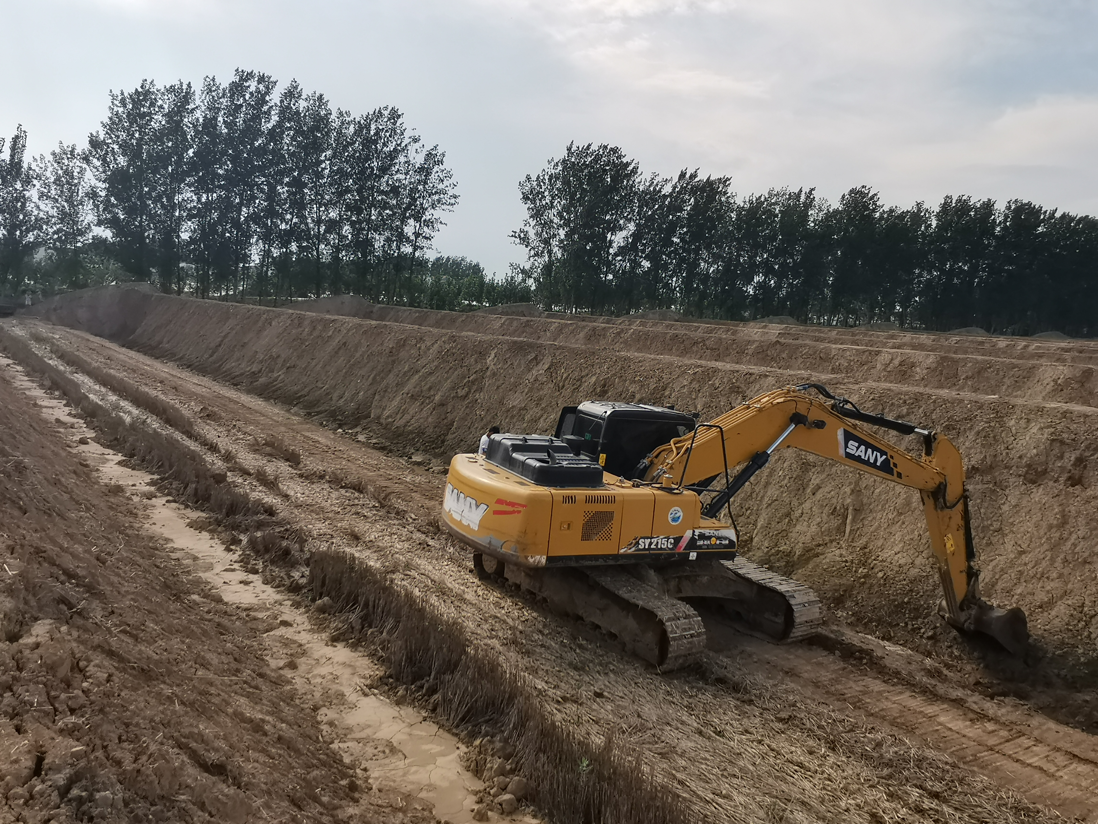 盛夏八月,扶溝縣柴崗鄉(xiāng)梅橋村幸福河畔綠意蔥蔥,生機(jī)盎然,河畔兩旁25座新建日光溫室大棚拔地而起正在緊張建設(shè)中,機(jī)器轟鳴聲此起彼伏,挖掘機(jī)、推土機(jī)穿梭而行,現(xiàn)場(chǎng)一片繁忙景象。受近期陰雨天氣影響,工人們正在抽積水、墊土方,克服不利因素加快施工進(jìn)度、緊趕工期。