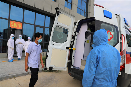 演練中,一名中年男子駕車到港區(qū)醫(yī)院就診,患者自述一周來在外地居住,無發(fā)熱癥狀,近一天來有氣促,活動后胸悶、氣促加重,偶有咳嗽。經(jīng)急診科醫(yī)生多次詳細詢問流行病學史,發(fā)現(xiàn)患者有隱瞞病史嫌疑(一周前同室居住工友,23日已確診為新冠患者),確定該病員為可疑新冠病毒肺炎患者。立即電話通知科主任及醫(yī)療救治專家組成員會診,根據(jù)患者主訴和臨床表現(xiàn),專家組分析高度懷疑病人為可疑感染新冠病毒病員。立即轉(zhuǎn)運至隔離留觀室,并通知傳染病管理小組將疫情上報至市疾病預防控制中心,并協(xié)助對該病員進行流行病學調(diào)查、轉(zhuǎn)運及指導消毒、滅菌等工作。經(jīng)市級專家會診后,符合疑似病例,按照區(qū)防控指揮部規(guī)定,采用負壓轉(zhuǎn)運車轉(zhuǎn)運定點醫(yī)院治療。