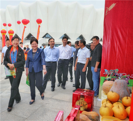 胡旭云在開幕式上致辭。她說,這是77萬扶溝人民分享收獲的盛會,展示了扶溝農(nóng)業(yè)的豐碩成果,她代表省農(nóng)業(yè)農(nóng)村廳向廣大農(nóng)民和奮戰(zhàn)在“三農(nóng)”一線的同志們表示誠摯的問候,對扶溝農(nóng)民豐收節(jié)的隆重舉行表示熱烈的祝賀。扶溝蔬菜種植歷史悠久,種植技術領先,規(guī)模集聚壯大,名優(yōu)產(chǎn)品眾多,蔬菜產(chǎn)業(yè)收入占全縣農(nóng)民人均純收入的37%,扶溝農(nóng)民找到了致富奔小康的金鑰匙。扶溝縣要認真貫徹落實習近平總書記關于“三農(nóng)”工作的重要論述,按照省委書記王國生調(diào)研扶溝講話要求,通過布局區(qū)域化、生產(chǎn)標準化、經(jīng)營規(guī)?;l(fā)展產(chǎn)業(yè)化、方式綠色化、產(chǎn)品品牌化,把扶溝蔬菜產(chǎn)業(yè)進一步做大做強做精,打造河南農(nóng)業(yè)的新亮點、河南蔬菜的優(yōu)質(zhì)品牌。