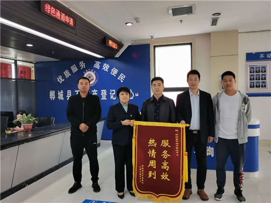 鄲城縣不動產(chǎn)登記中心:服務(wù)高效 企業(yè)致謝贈錦旗