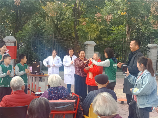 來到周口市老年護(hù)理院之后,學(xué)生們在老師的有序組織和家長們大手牽小手的幫助下,給那里的爺爺奶奶們送去了節(jié)日的祝福。祝愿爺爺奶奶身體健康,生活快樂!同時為爺爺奶奶表演了自編自導(dǎo)的節(jié)目。孩子們的有趣表演博得老人們開心開懷,并給以陣陣掌聲。
