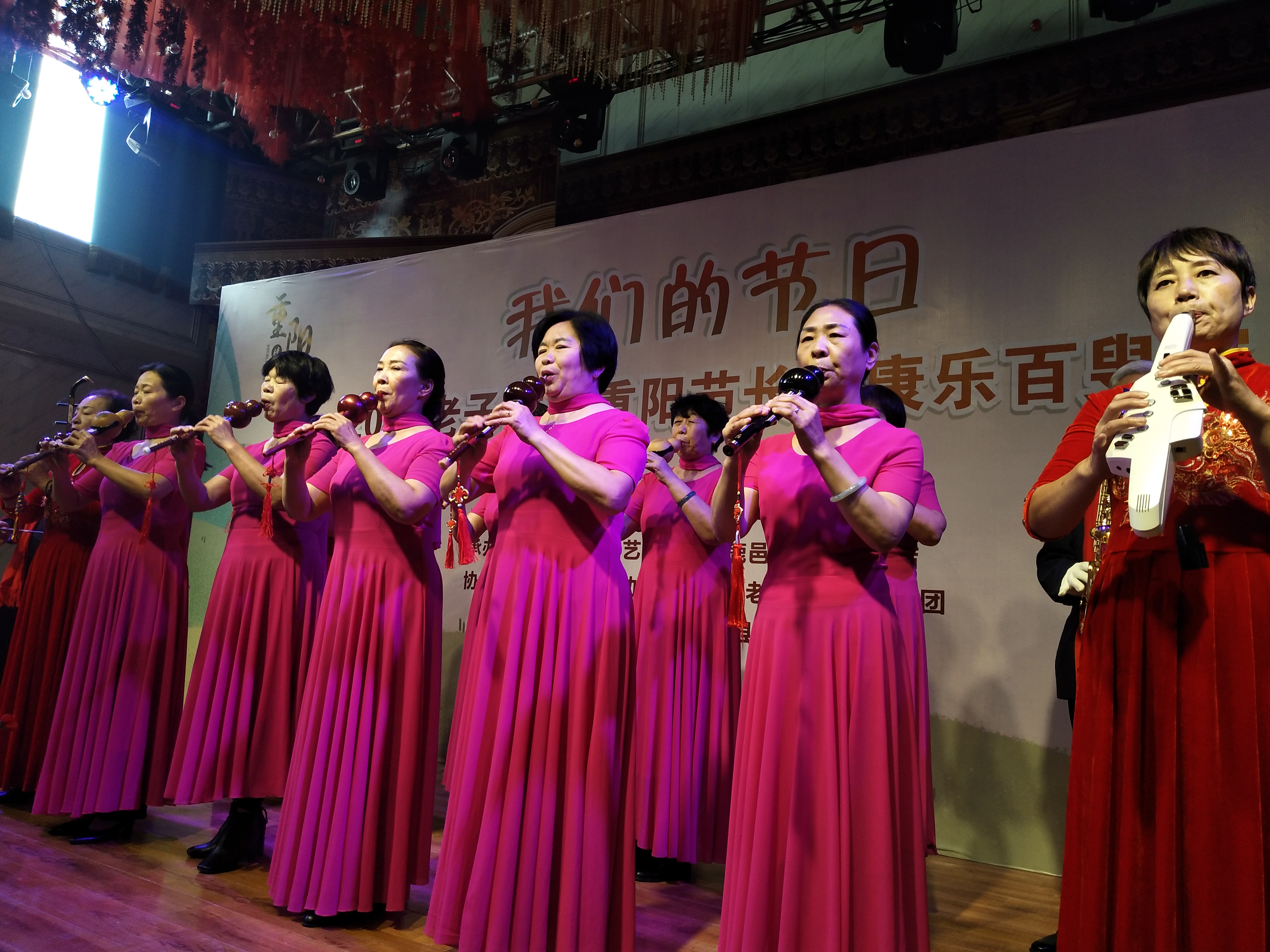 鹿邑縣舉辦的“我們的節(jié)日——2020老子故里長安康樂百叟宴”于上午11時開始,來自縣曲藝家協(xié)會、縣詩詞協(xié)會、縣書畫協(xié)會的老藝術家們進行才藝展示,首先是縣老干部大學葫蘆絲隊表演了葫蘆絲合奏《花好月圓》《九月九的酒》,縣詩詞協(xié)會的翟明、張明山、林建華分別放聲朗誦了《重陽禮贊》《我愛仙鄉(xiāng)的土地》《歡聚在長安》,而縣曲藝家協(xié)會的史云龍表演的墜子《王華買爹》更是別有風情……