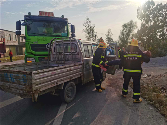 周口市商水縣公安局交警大隊(duì)為提高民警處置國、省道市縣結(jié)合部路段道路交通事故應(yīng)急救援能力,第一時(shí)間救助受傷人員,最大限度將交通事故造成的人員傷亡、財(cái)產(chǎn)損失、環(huán)境污染等危害后果降低到最小限度。10月26日下午3時(shí),在周口市交警支隊(duì)事故科王領(lǐng)科長的協(xié)調(diào)指揮下,商水縣公安局交警大隊(duì)聯(lián)合駐馬店市上蔡縣公安局交警大隊(duì),在223省道(原219省道)商水縣與上蔡縣交界處的上蔡縣華陂鎮(zhèn)賴莊路段,模擬大貨車與微型貨車發(fā)生事故現(xiàn)場(chǎng),演練省道市際突發(fā)道路交通事故應(yīng)急救援行動(dòng)。