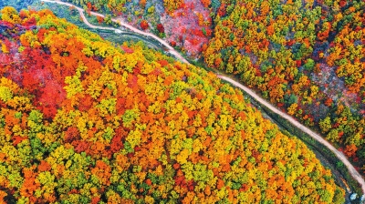 洛寧縣上戈鎮(zhèn)劉墳村紅葉嶺上層林盡染、美景如畫(10月26日攝)。李峰攝
