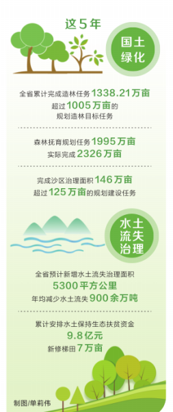 數(shù)據(jù)顯示,這5年,全省累計完成造林任務(wù)1338.21萬畝,超過規(guī)劃目標(biāo)任務(wù)的三分之一;累計完成森林撫育2326萬畝,是規(guī)劃目標(biāo)任務(wù)的116.3%,為“十三五”交上了一份出色的答卷。