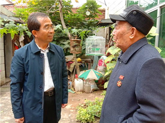 快到王景文家時,記者與他取得了聯(lián)系,沒想到他竟到路口來迎記者,看到他硬朗的身板和健康的身體,聽他說話聲音洪亮、底氣十足,記者還是很欣慰的,畢竟經(jīng)歷了70年的風雨洗禮,還能行走自如、聲如洪鐘,的確是寶刀不老。被他迎進家,其老伴滿頭銀發(fā),喜瞇瞇地讓記者進屋,王老先生去里屋找出了一枚抗美援朝紀念章,并說抗美援朝和平紀念章等物品都放丟了,找不到了,有些遺憾。記者就開門見山地說要聽他講講參加抗美援朝的故事,他不好意思地笑了:“講不好,年齡大了,記性不好,有好多事都記不清了……”當問起他老家是哪里時,王老先生還是打開了話匣子。1934年,他出生在淮陽縣劉振屯鄉(xiāng)耿樓大隊李樓村,由于家境貧寒,他從小就跟隨家人一路逃荒要飯來到了扶溝,但日子還是艱難,為了能活命,父母無奈把他送給了扶溝縣城一戶人家,從此他就成了這戶人家的孩子,并于1951年5月結(jié)婚??山Y(jié)婚沒幾個月,縣里就開始征兵了。當兵離家,要丟下妻子,更何況妻子已有孕在身,他真舍不得;保家衛(wèi)國,是義務是責任是擔當,他責無旁貸。家與國,他毅然選擇去當兵。與新婚燕爾的妻子依依惜別,他踏上了行軍的征程。那時可沒有車接送,去往目的地,全靠兩條腿,行軍與訓練的苦與累難以想象。問他不害怕當兵打仗嗎?他回答:“不怕!”語氣堅定而有力。生活的磨難讓他對安穩(wěn)的生活有一種渴望,他明白戰(zhàn)爭會讓國家陷入混亂不堪的局面,老百姓的生活會更加艱難,為了祖國的和平安寧和兄弟姐妹的幸福,他愿意去當兵打仗。保家衛(wèi)國的種子早已種在了他的心里。