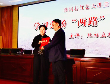 為了更好地學(xué)習(xí)張福林烈士事跡,弘揚(yáng)“兩路”精神,激發(fā)全縣干部群眾的干事創(chuàng)業(yè)斗志,此次講座請(qǐng)回了張福林烈士的弟弟——張福立將軍,為大家講述了“兩路”精神。