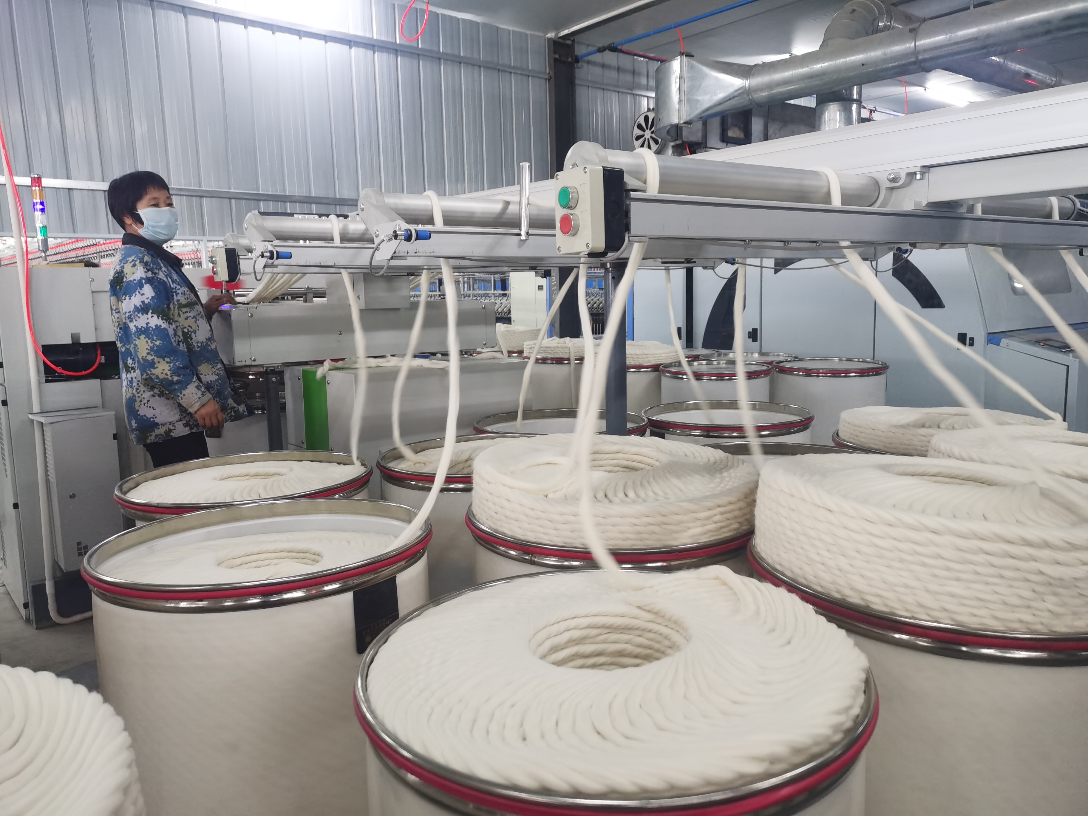 11月9日,扶溝縣博發(fā)紡織有限公司一期2萬(wàn)紗錠生產(chǎn)線(xiàn)進(jìn)口設(shè)備安裝完畢,正在試車(chē)。