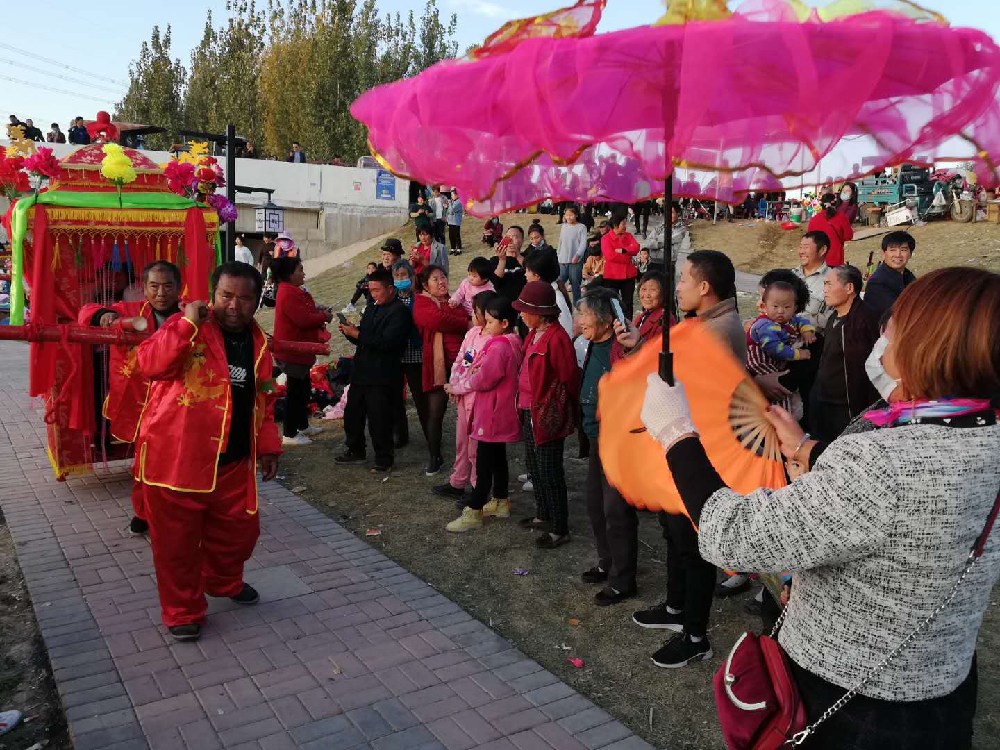 11月8日,市民在商水縣高標(biāo)準(zhǔn)農(nóng)田灌溉渠兩岸游玩。